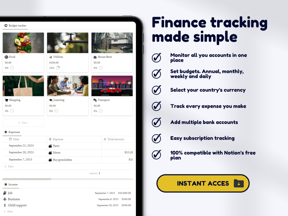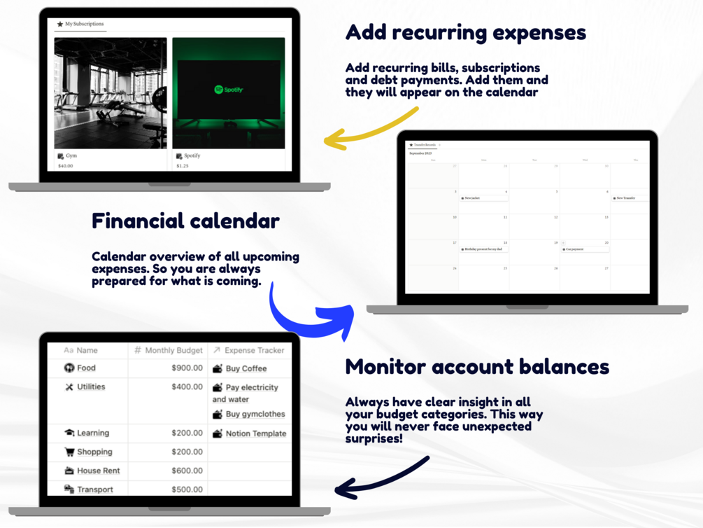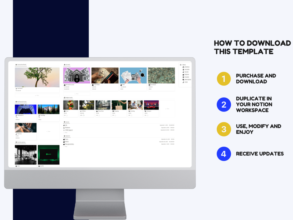 Problem #1: Lack of insight in your finances. Do you find yourself struggling with keeping track of your financial obligations? Our Notion template offers an easy to use and organized system to centralize all your financial data in one place.